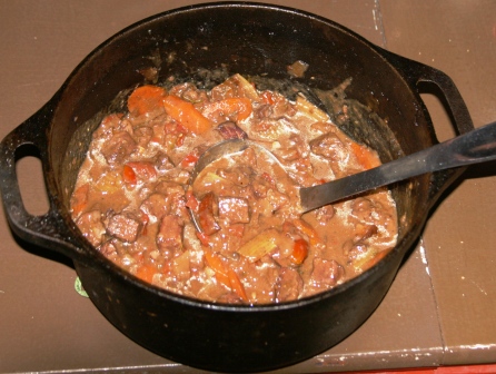 I’m sorry the photo of the stew makes it look a little sloppy but I was in a hurry to take the photo and eat. I didn’t clean the sides of the pot as I should have. But this is a great recipe from “The Flavors of Country Cooking” by Country Living. I am a fool for slow cooked beef. This recipe features it perfectly. Please do take the time to make this on a weekend because it needs at least 2 ½ hours to cook but is so worth it. And don’t rush the browning process for the beef or venison. That is where you start to build up the layers of flavor in the pot and when you deglaze with the red wine all of the browned bits sticking to the bottom of the pot is released in all of its great tasting glory.