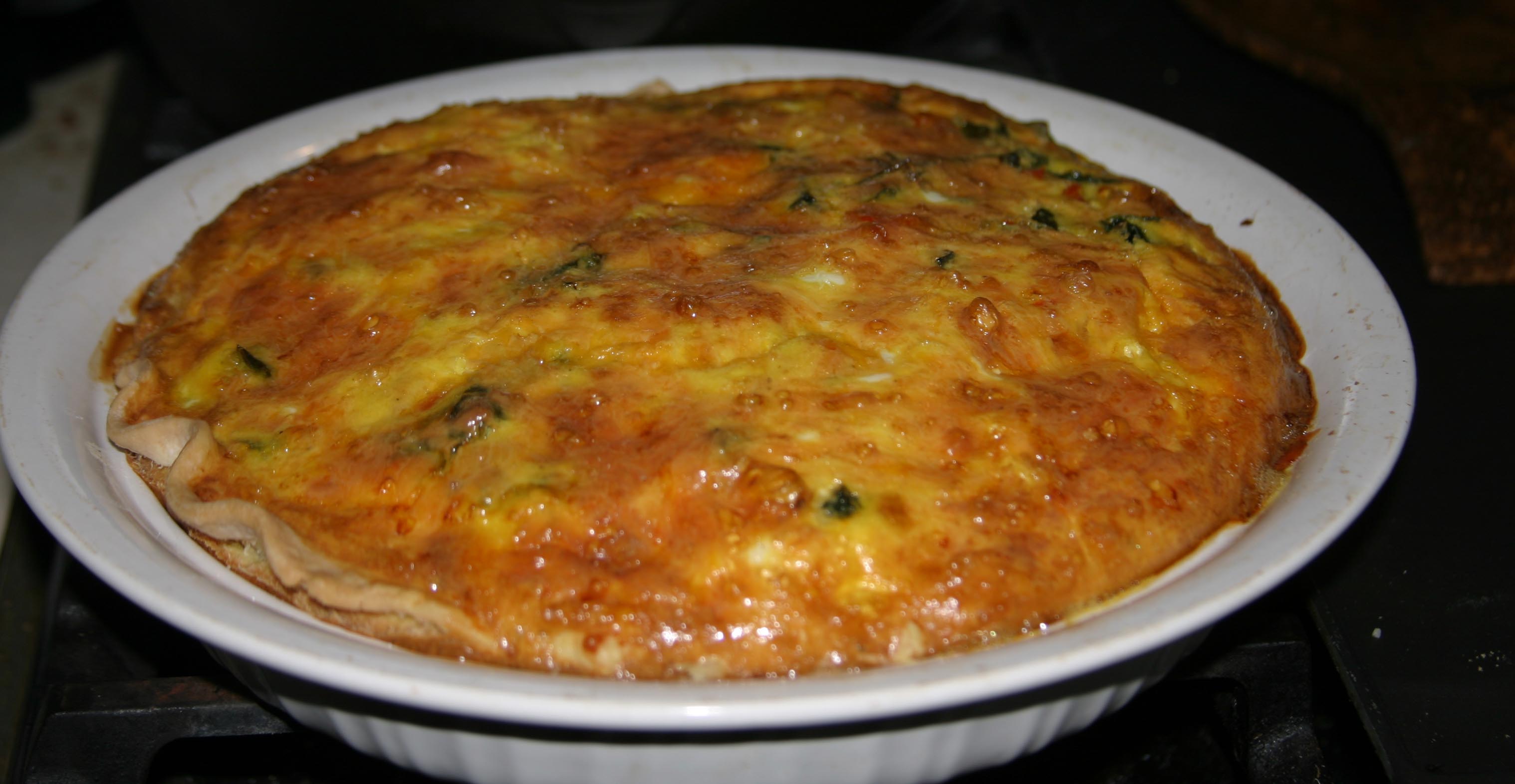 This a quick and easy recipe for breakfast, brunch, lunch or even breakfast for dinner. You can use a variety of greens in this quiche. Use what you have on hand. I had blanched kale and mustard greens in my deep freeze. They are part of my garden harvest.