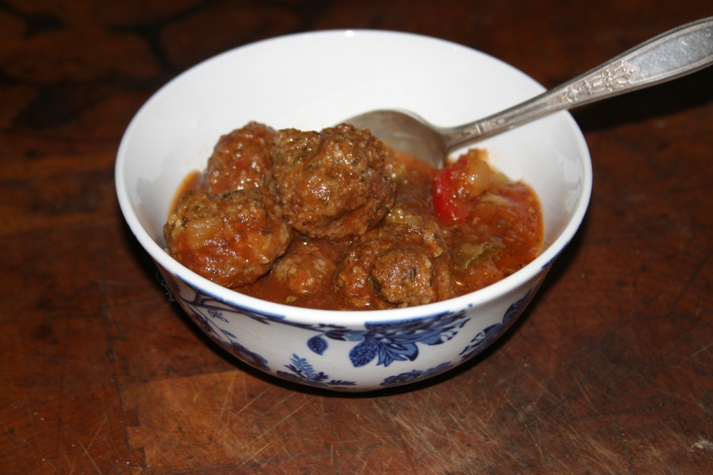 Transfer the meatballs into the slow cooker. Cook for two hours. Add the pineapple and red and green peppers. Can be served over rice.