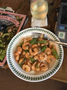 I just had a nice pea harvest and I wanted to something that highlighted the peas. This is a perfect weekend lunch or work week dinner. Use uncooked shrimp for this recipe since they will be quick cooked in the stir fry. I found this recipe over at www.thelifejolie.com .The original recipe called for soy sauce. I used ponzu sauce instead. It has a wonderful citrus flavor to it. I was in Louisiana a couple of weeks ago. My friend’s neighbor has bees and sells Catahoula Wildflower honey. It is awesome. BTW this dish goes very nice with a dry white wine, (as seen in the photo!)